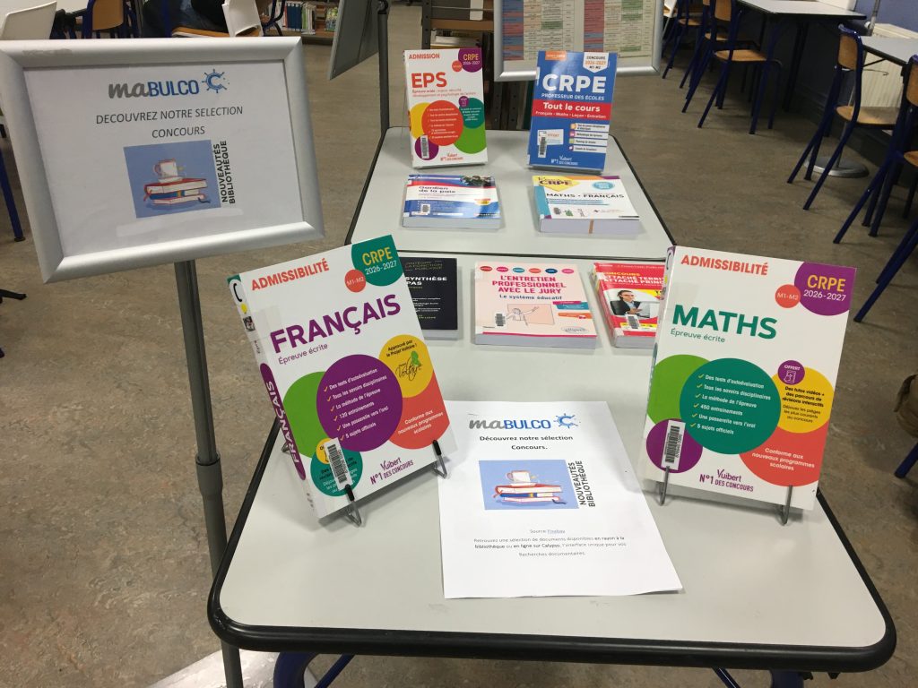 Venez découvrir les dernières acquisitions dans votre BU de Calais ! Vous y trouverez les dernières nouveautés parues sur la thématique des concours. A consulter et emprunter sans modération !