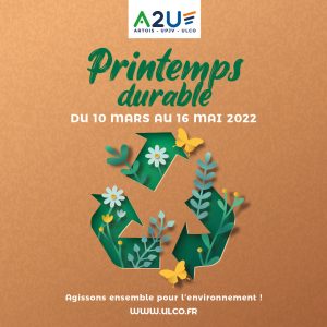 Du 14 mars au 16 mai 2022, la Bulco et le projet EnerUlco organise « Le printemps durable » en partenariat avec les trois universités de l’alliance A2U.